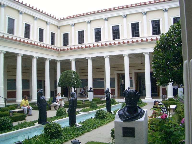 小時候去過美國一次。不過除了迪士尼樂園以外其他通通忘光光了。這是是到Getty Research Instute去,在正式會議前有一個free的日子,有到Getty Museum去參觀,會議結束也有一天休息,透過關係我們獲得了免費參觀但是很難預約的Getty Villa門票,但也是Getty關係企業。說這次是去做Getty深度之旅應該也不過分吧?比起Getty Museun,Villa的感覺確實比較好,模仿古羅馬的建築啊擺設啊還有藏品,有一種身處在古代的感覺。Getty Museum感覺上很現代,比較不那麼特別。我是說房子啦,裡面的藏品當然很不錯。