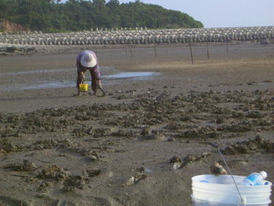 傍晚有很多阿伯阿桑,都拿著水桶去摸蛤蠣。花這麼多時間摸了回去煮了一鍋一下就吃光了不會很空虛嗎?