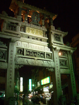 晚上參加了「夜遊後浦美麗小鎮、漫步歷史人文古城」的導覽,看看金城地區的著名景點各種傳統建築,不過吃完飯後突然下起雨來,大家就在雨中聽導覽員說明各種建築、洋樓、寺廟、牌坊等的典故。其中有一間朱子祠,相傳朱熹曾經到金門來辦學,從此只要有唸到博士學位的金門人,一律會把名字刻在木板,掛在牆上,真是風光哩。有同行的遊客發現裡面有自己認識的金門同學,所以這面博士牆應該不是唬爛的喔?